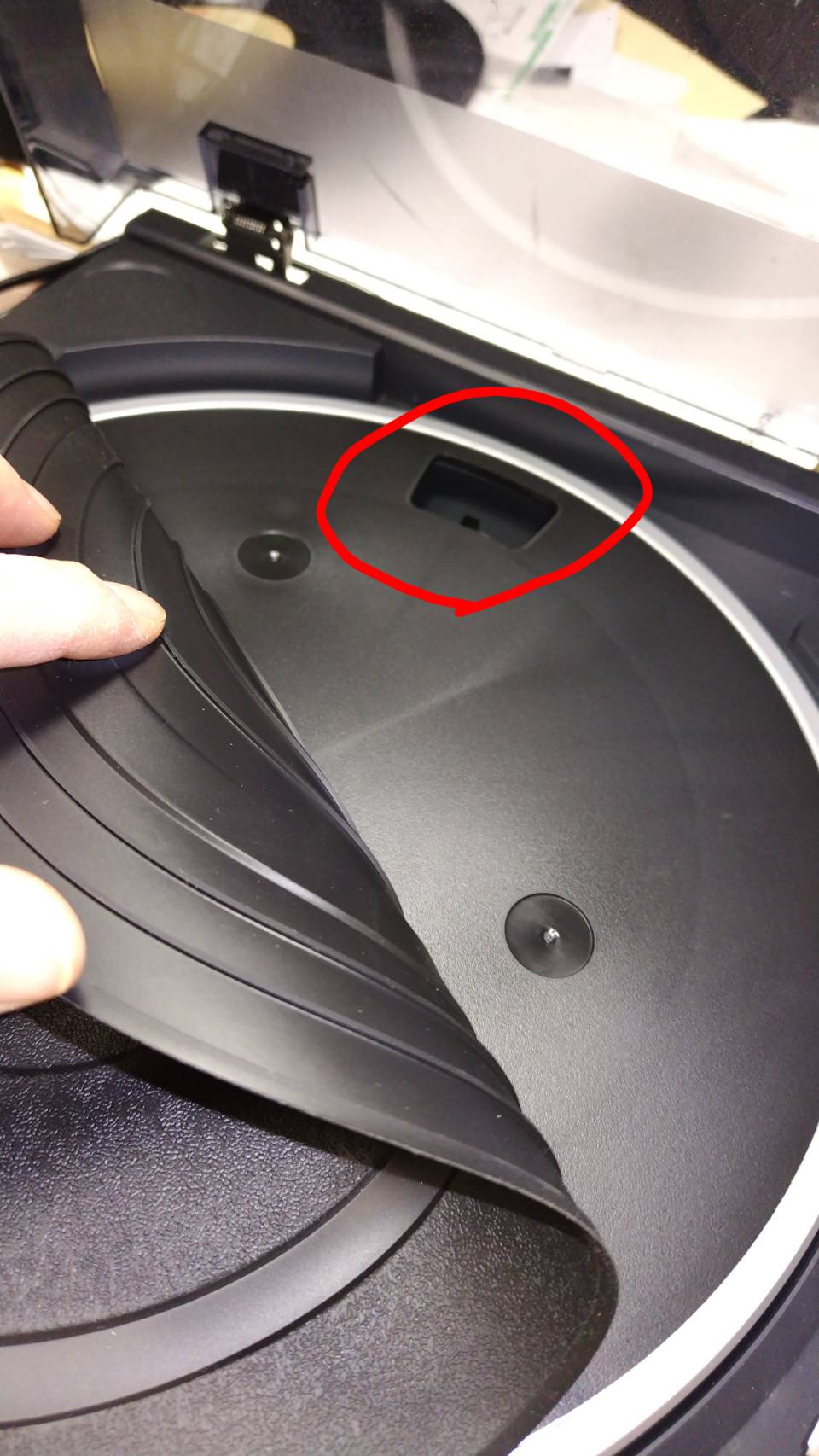と思ってしばし考えた、もしかしてこのターンテーブルの下か!